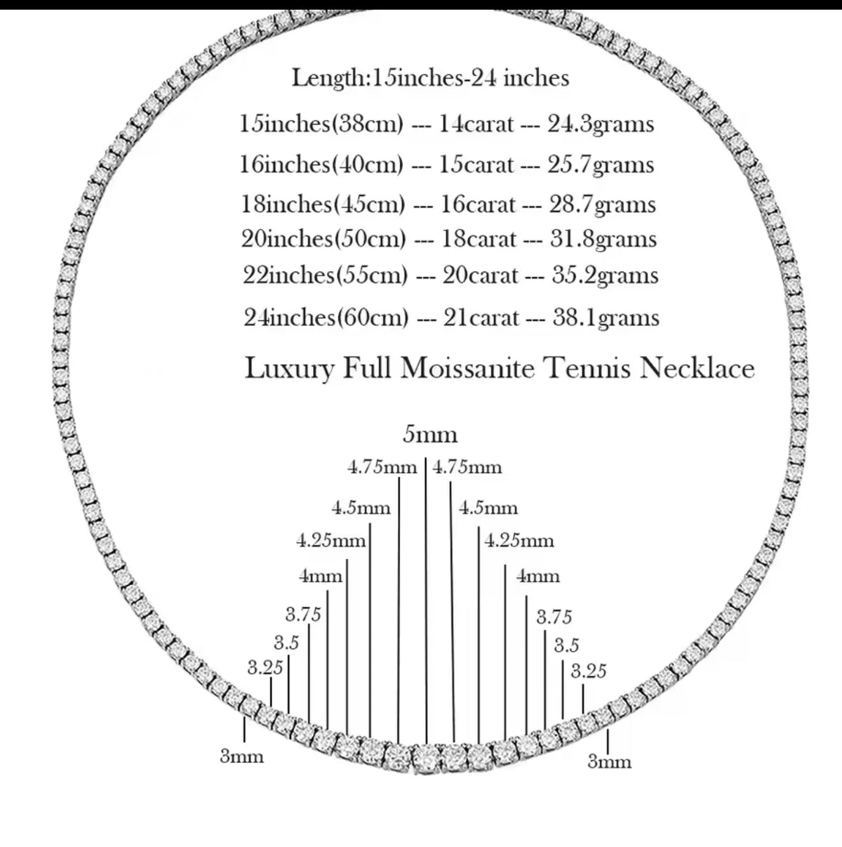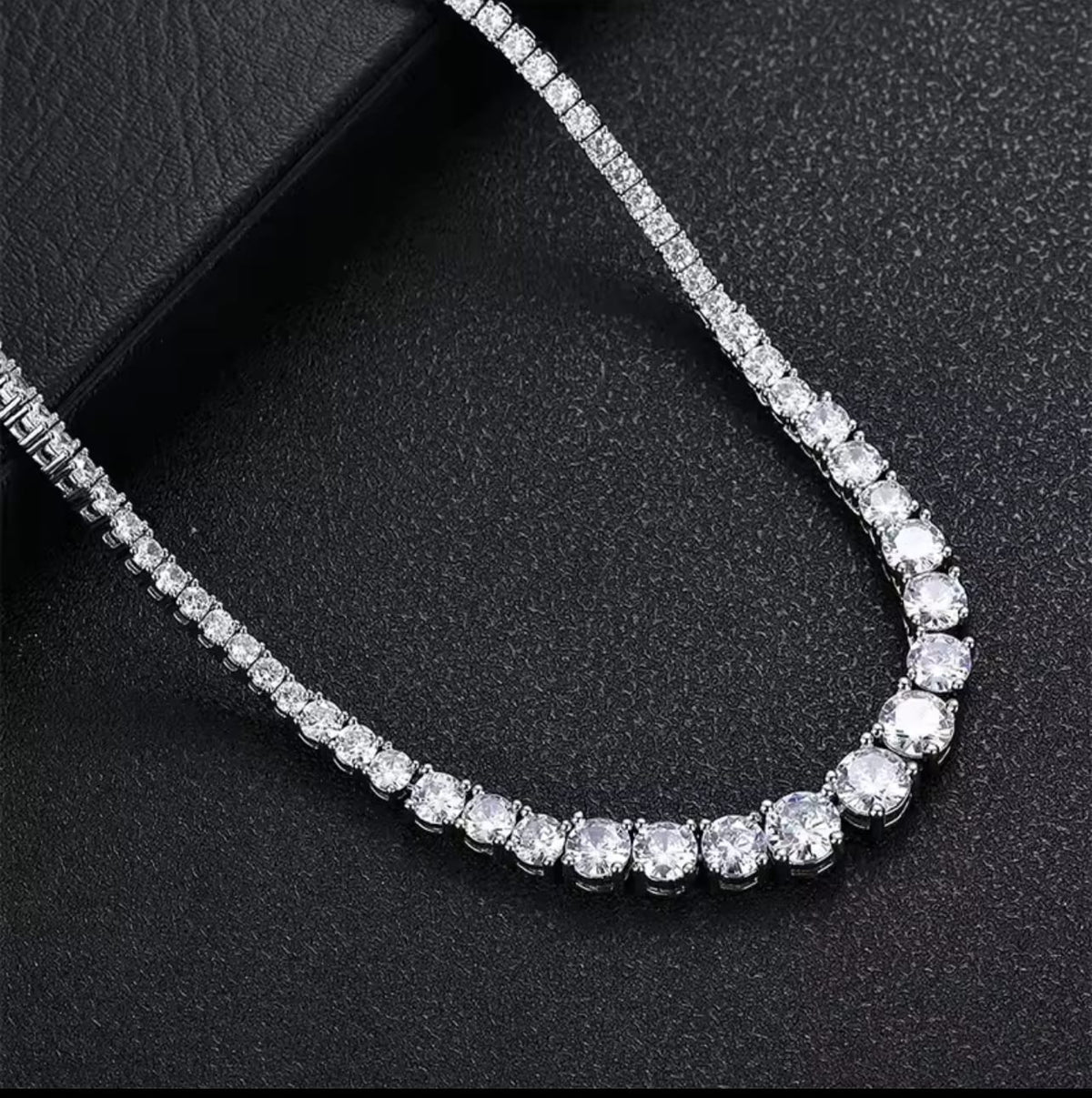 Gradual tennis Necklace Lab / Moissanite Diamonds set in sterling silver - Center stone 5mm (.5ct) to 3mm / 16"